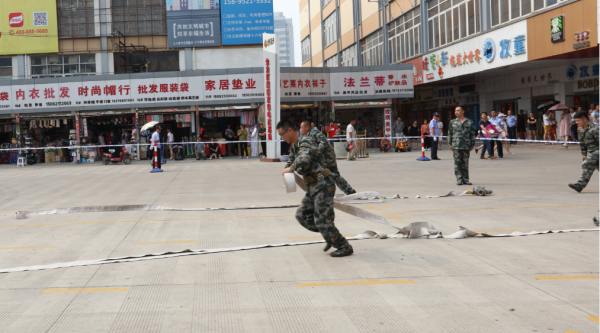 2017年6月28日,宣武集團(tuán)在商貿(mào)城開展消防綜合演練活動(dòng)?;顒?dòng)中,集團(tuán)經(jīng)濟(jì)護(hù)衛(wèi)隊(duì)、市場(chǎng)業(yè)戶、消防隊(duì)進(jìn)行了擒敵拳、班隊(duì)列、消防水帶連接、滅油盆火4個(gè)項(xiàng)目業(yè)務(wù)技能匯報(bào)表演,并與云龍消防大隊(duì)聯(lián)合進(jìn)行了一次滅火和應(yīng)急疏散演練。通過演練,進(jìn)一步提升了職工、業(yè)戶的消防安全意識(shí)和應(yīng)急處置能力。房管局系統(tǒng)、云龍區(qū)相關(guān)領(lǐng)導(dǎo)及駐市場(chǎng)工商、稅務(wù)等領(lǐng)導(dǎo)觀摩演練,并對(duì)演練效果給予高度評(píng)價(jià)。